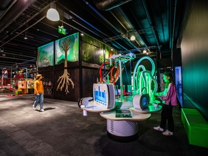 Den store interaktive utstillingen i Bergen er full av spennende aktiviteter for barn og voksne. Utforsk vann, VR, roboter, klatrevegg, sykle 360 grader og lær gjennom lek.