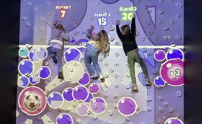 Klatreveggen tilbyr en unik, interaktiv opplevelse hvor du aktiviserer hele kroppen ved å klatre opp og ned, frem og tilbake på veggen.