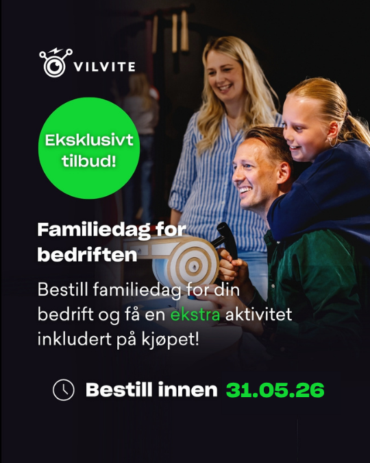 Bestill en familiedag til bedriften hos VilVite før 31.05.26, og vi spanderer en morsom aktivitet til hele gjengen.