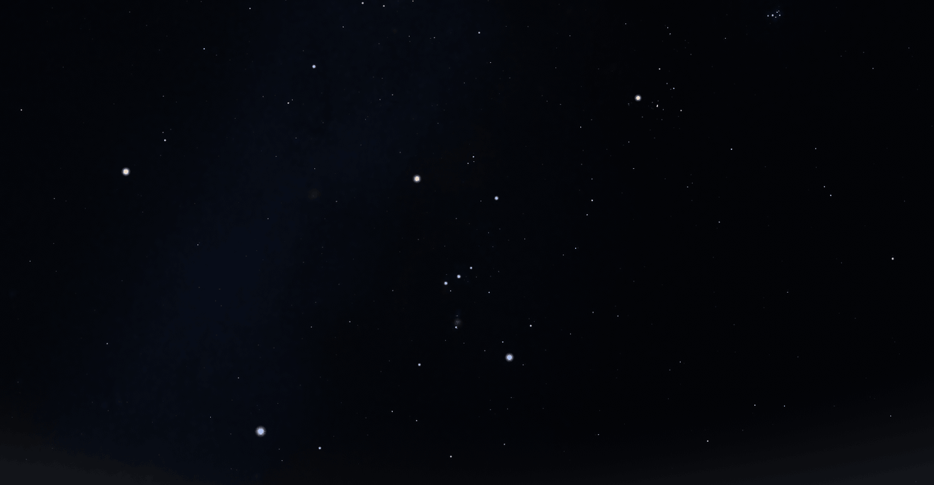 Stjernebilde Orion er synlig på nattehimmelen på vinteren, og har flere kule ting ved seg.