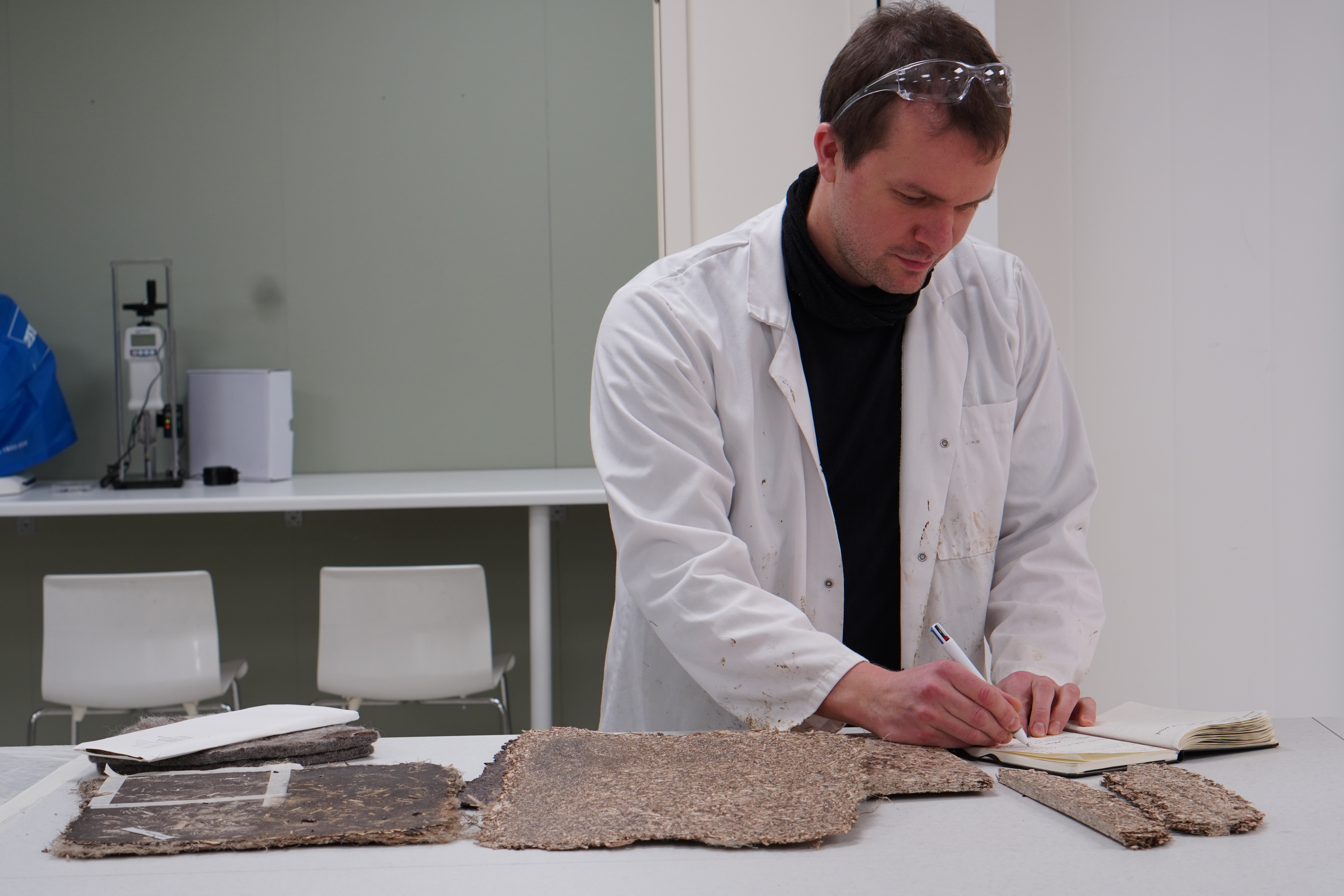 Bilde: Lars Haugen Aardal fra Bioregion Institute jobber med materialer til Naturlige byggeklosser.