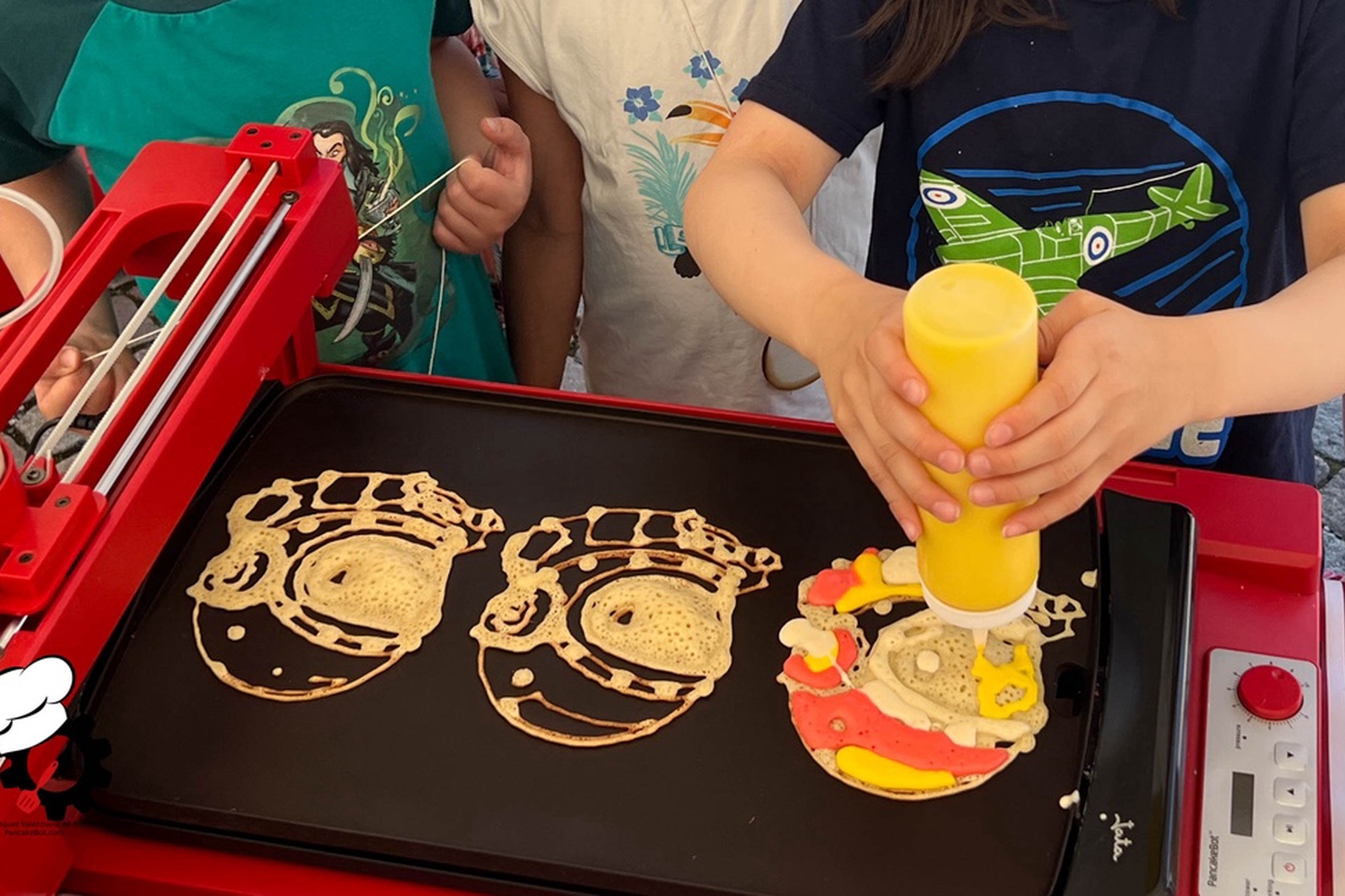 Den populære pannekakeroboten til Miguel Valenzuela er tilbake! Med noen tastetrykk kan du bestille pannekaker i kreative former og mønstre – og se roboten tegne dem rett på stekepannen. En smakfull opplevelse for både øyne og mage, og en morsom introduksjon til hvordan teknologi og mat kan kombineres.