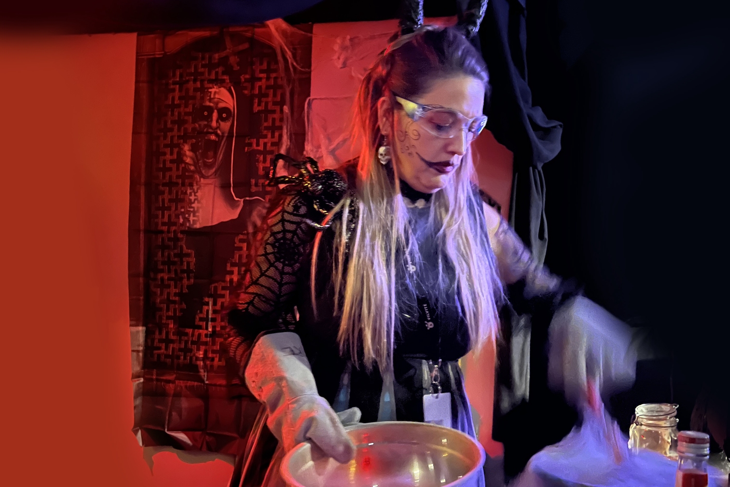 Denne kvelden serverer Heksa "blod-is" med liklarver til de aller modigste, tør du smake? Den inneholder kanskje flaggermusmelk, slangespy og tåneglpulver, eller gjør den det? Det må du finne ut selv!